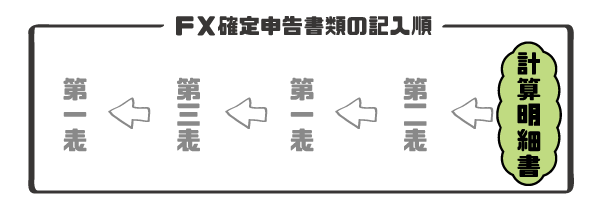 次に、各FX会社から取り寄せた「年間取引報告書」を参考にして画像の丸で囲った部分へ取引内容を記入します。